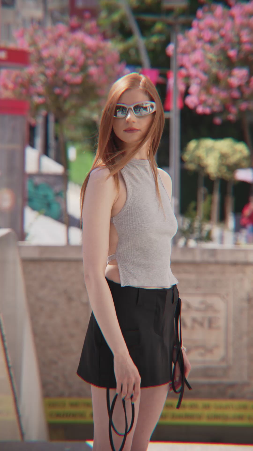 Düşük bel kesimi ve mini boy formu, modern ve cesur bir siluet oluşturur.
